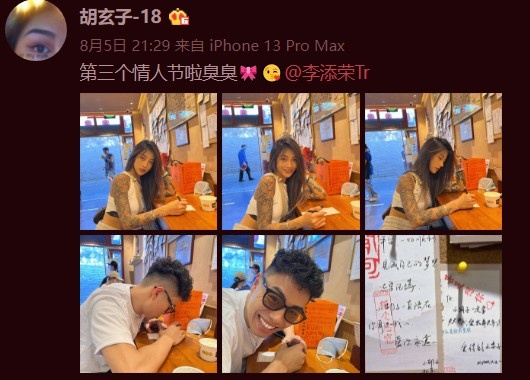 直播吧8月6日讯 昨天,上海男篮后卫李添荣更新一则微博,晒出与女友合照大秀恩爱,并配文:“❤️和对的人在一起 每天都是情人节❤️ ”