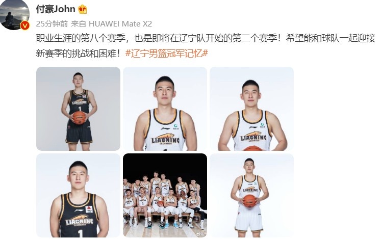 付豪配文写道:“职业生涯的第八个赛季,也是即将在辽宁队开始的第二个赛季!希望能和球队一起迎接新赛季的挑战和困难!”