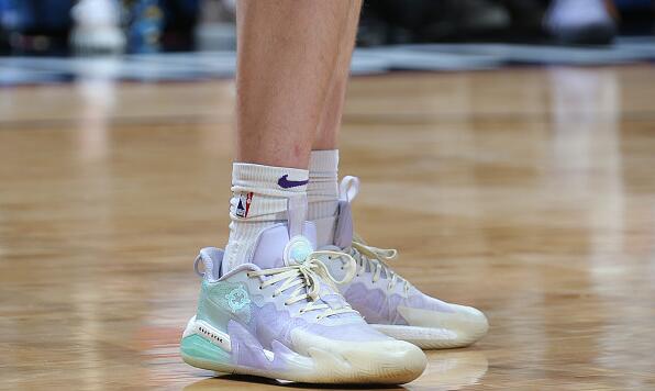 此役,湖人后卫奥斯汀-里夫斯上脚止戈1Pro,配色还是马卡龙。