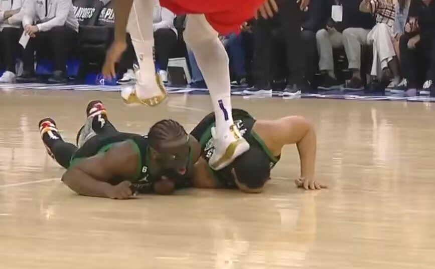 😱吓住!恩比德踩到格威头部瞬间
