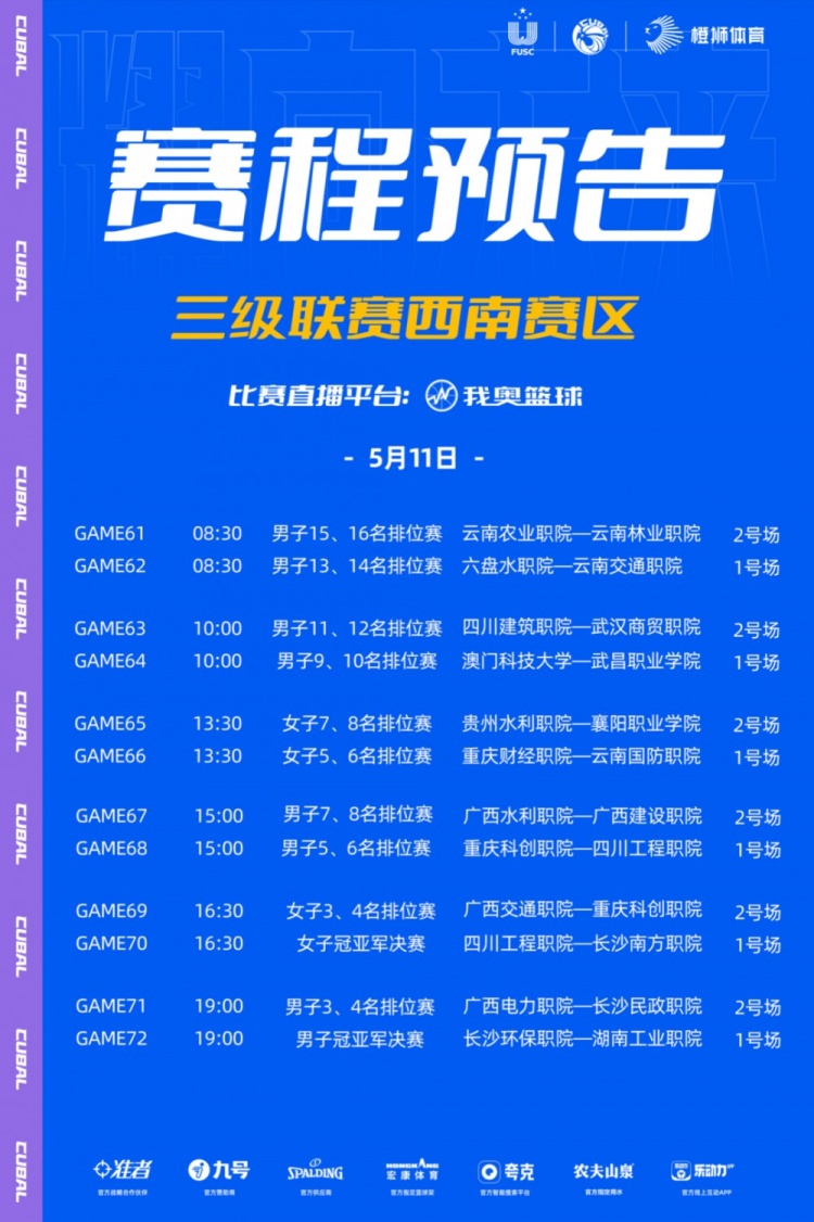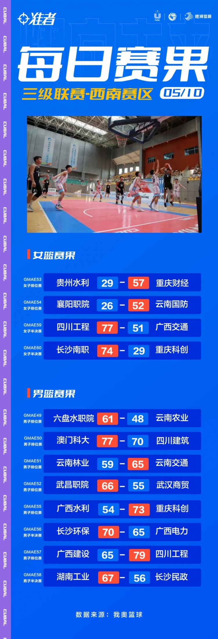 5月10日,三级联赛西南赛区倒数第二个比赛日,女篮半决赛四川工程职院、长沙南方职院战胜对手,顺利会师西南决赛!男篮方面,长沙环保职院、湖南工业职院战胜对手,晋级西南赛区决赛!明日谁是三级联赛西南之王?评论区聊一聊~