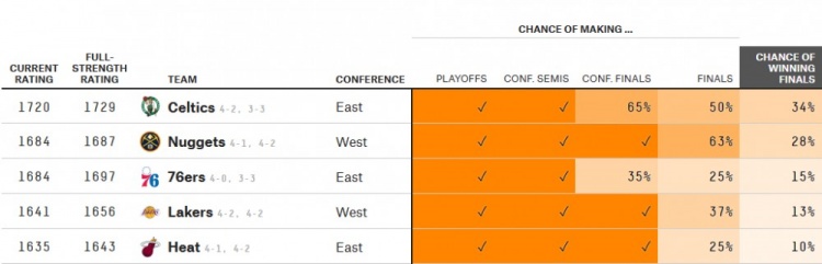 赛后,据大数据机构FiveThirtyEight模型预测,湖人打进总决赛的概率为37%,夺冠概率为13%。