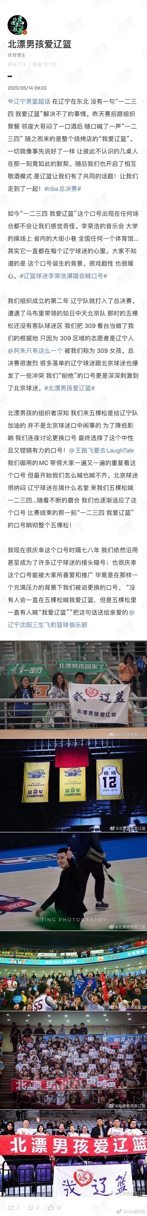 直播吧5月15日讯 今日,微博博主@北漂男孩爱辽篮 更新微博分享了辽宁球迷“1234 我爱辽篮”口号的由来。