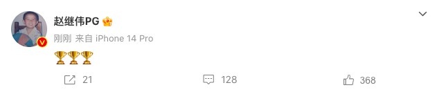 赛后辽宁球员、本次总决赛MVP赵继伟更新微博写道:“🏆🏆🏆 (三冠)”