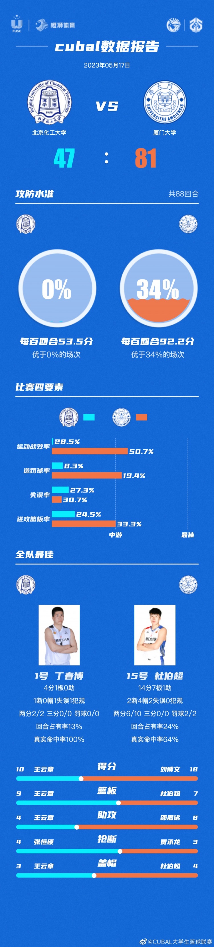 末节,厦大稳扎稳打将分差稳定在20分。最终全场结束,比分47-81,厦门大学挺进胜者组。