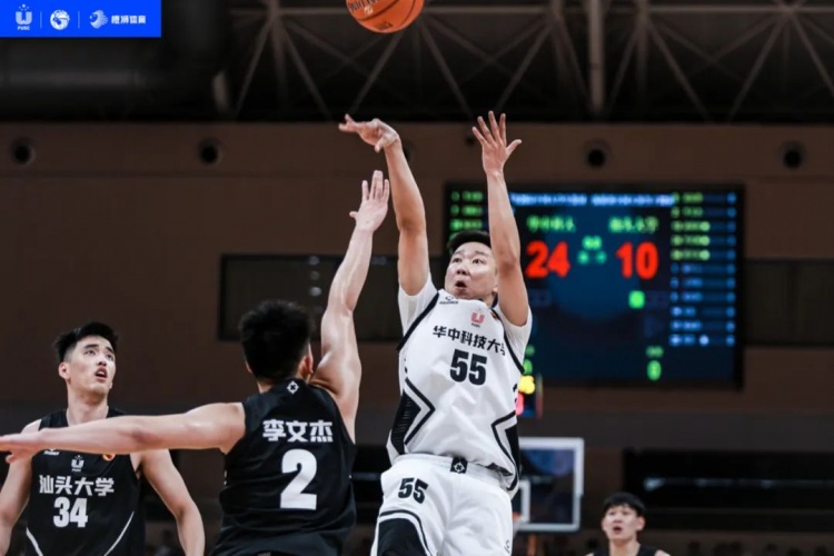 揭幕战开局,汕头大学率先发力,打出一波10:3小高潮,华中科大请求暂停调整状态,而后杨佳龙内线强打追上比分,杨峻一更是三分线施压完成抢断、转守为攻,将分差缩小至一分,再紧接一记飞身上篮完成比分反超。华中科大的持续压制让汕头大学失去得分机会,首节比分19:10。次节华中科大保持状态打出7-0的小高潮。关键时刻汕头大学祁锦鸿三分打进,但依旧难挡华中科大的猛烈攻势,上半场结束比分为41:26。
