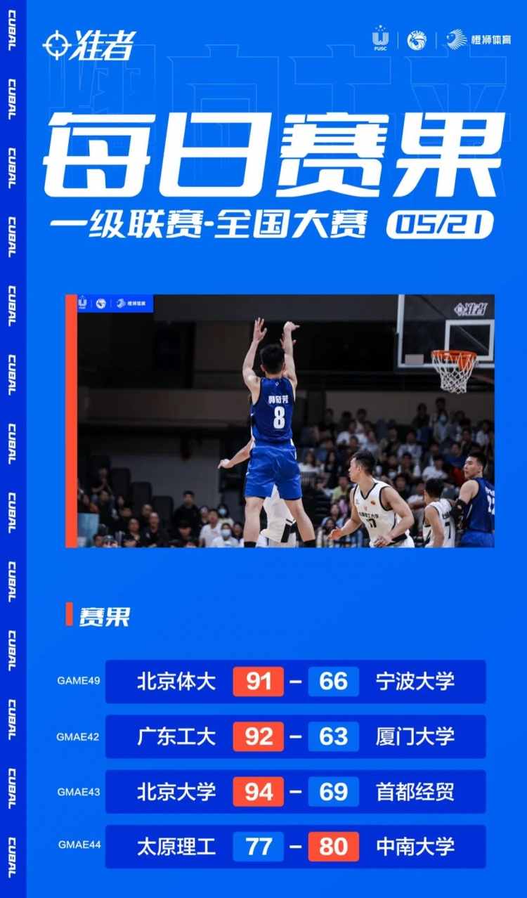 5月21日,第25届中国大学生篮球联赛全国32强在华中科技大学顺利闭幕。最后四支全国八强队伍也逐一决出。北体大战胜宁波大学,首次闯入全国八强!中南大学逆转战胜太原理工,拿下最后一个八强名额!广东工大战胜厦门大学,北京大学战胜首都经贸,获得晋级。