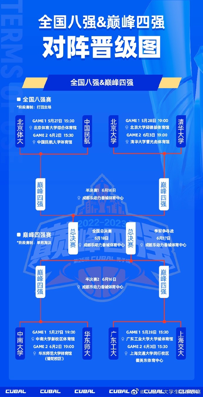 5月27日,15:30北京体大主场,19:00中南大学主场;
