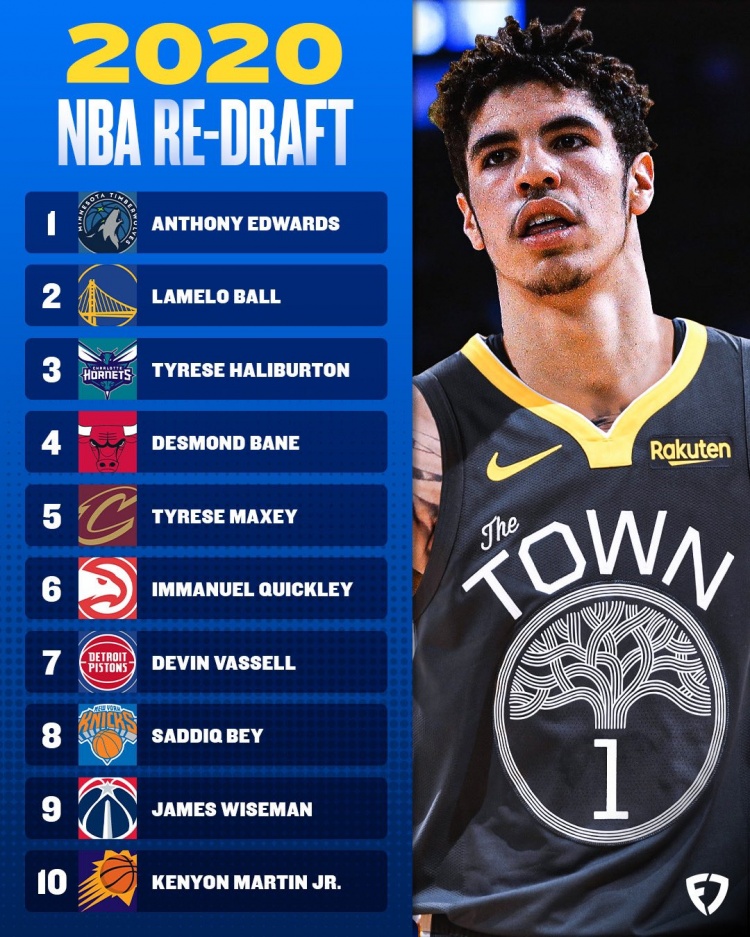 直播吧5月28日讯 近日美媒FanDuel重排了2020年选秀前10,具体如下: