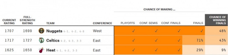 赛后,据大数据机构FiveThirtyEight模型预测,凯尔特人翻盘杀进总决赛的概率为71%,热火仅剩下29%。