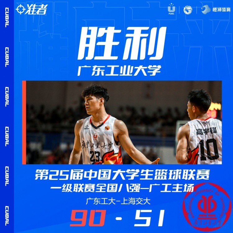 5月28日,全国八强第一轮比赛,广工坐镇主场迎战上海交大,在陈国豪、高宇锋、卢健豪等人的精彩发挥下,最终以90:51大胜上海交大,拿下首轮胜利。晚间,北京大学坐镇主场对阵清华大学,在上半场落后情况下,韩浩宇、罗浩源、林绍雄等人的密切配合最终逆转战胜清华大学!