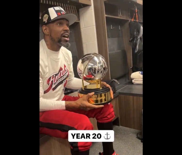 赛后,哈斯勒姆在更衣室抱着东部冠军的奖杯并说道:“感谢兄弟们的工作。”