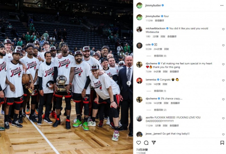 赛后,巴特勒在INS上晒出本场照片,并写道:“四场。”