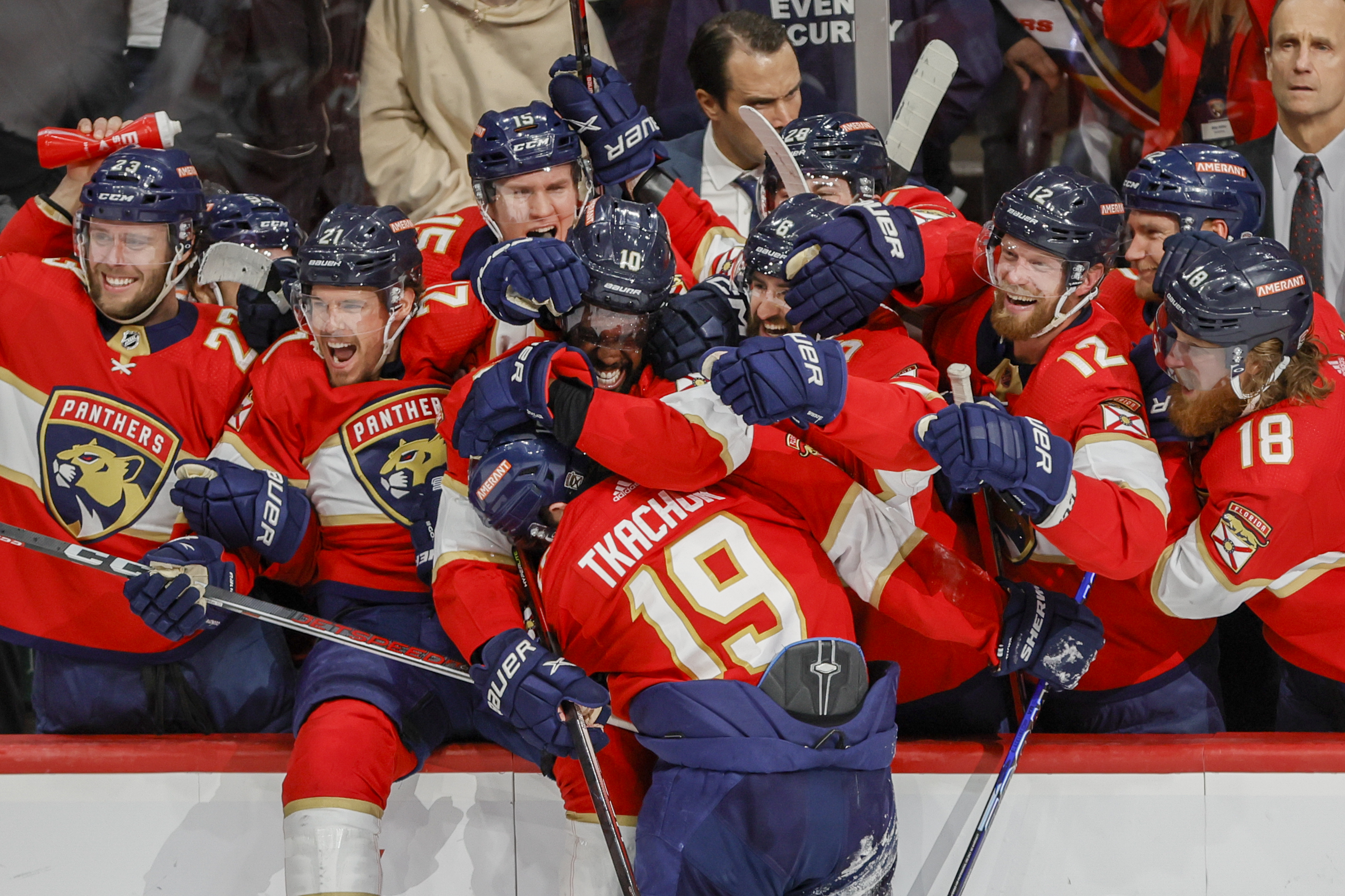要指出的是,热火的同州NHL(冰球)球队佛罗里达美洲豹(42胜40负)在季后赛首轮对阵联盟第一的波士顿棕熊(65胜17负),他们在1-3落后的情况下连胜3场在客场完成“黑八奇迹”;次轮4-1淘汰多伦多枫叶,东决4-0横扫卡罗莱纳飓风,闯入斯坦利杯决赛将对阵维加斯黄金骑士。