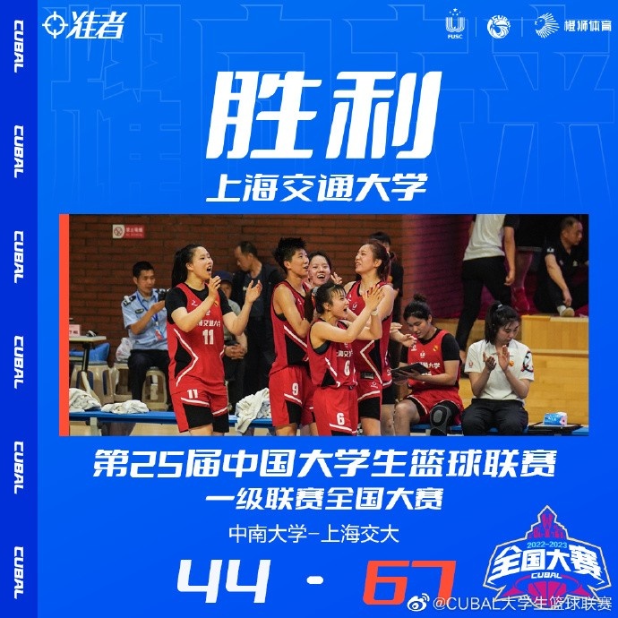 直播吧5月30日讯 CUBAL全国淘汰赛女子组,上海交大对阵中南大学。