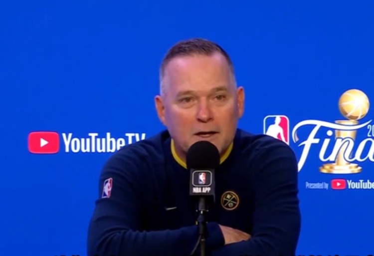 直播吧6月2日讯 掘金今天104比93击败热火,总决赛大比分1比0领先。赛后球队主教练马龙接受了媒体的采访。
