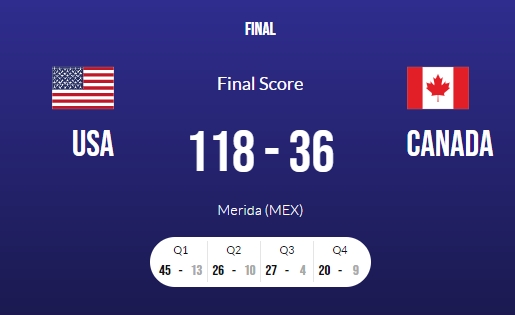 直播吧6月12日讯 今天进行的U16男篮美锦赛决赛,美国队以118-36,82分的巨大优势,击败加拿大完成八连冠。