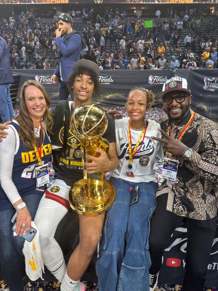 掘金球员纳吉晒出了自己和家人手捧总冠军奖杯的照片,并且写道:“所有的荣誉都来自于最崇高的祝福。”
