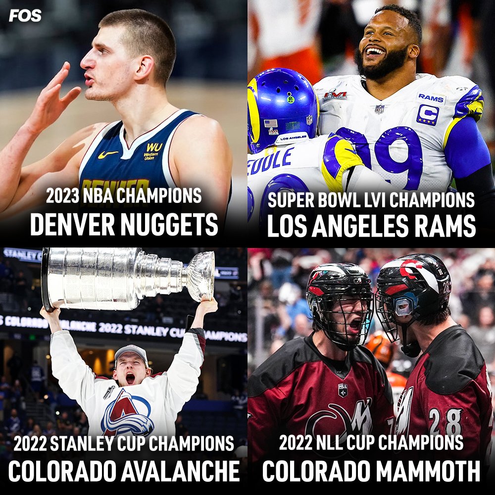 2022年:NFL洛杉矶公羊获得超级碗冠军,NHL科罗拉多雪崩拿下斯坦利杯冠军,NLL(袋棍球)科罗拉多猛犸斩获冠军;