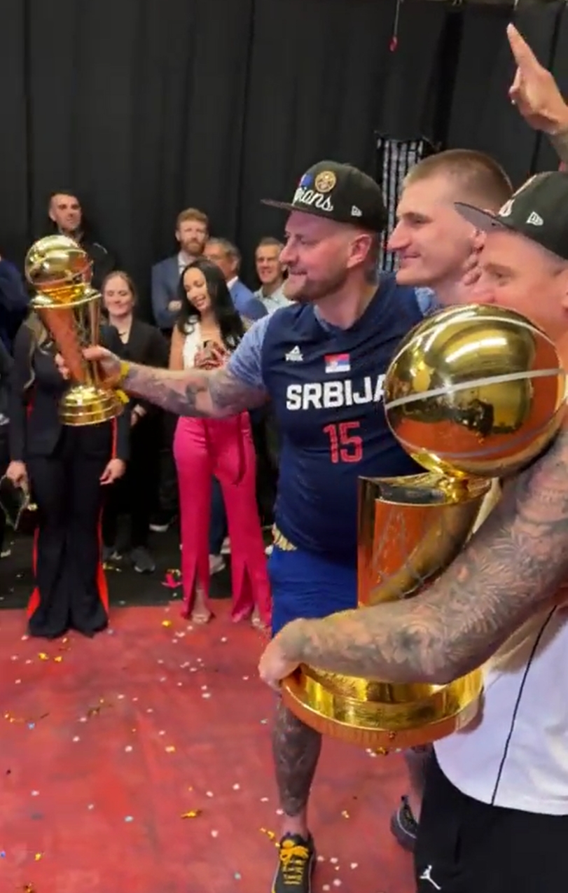 直播吧6月14日讯 霍福德妹妹在掘金队夺冠之后转发了约基奇哥哥们和约基奇一起和冠军奖杯合影的视频。