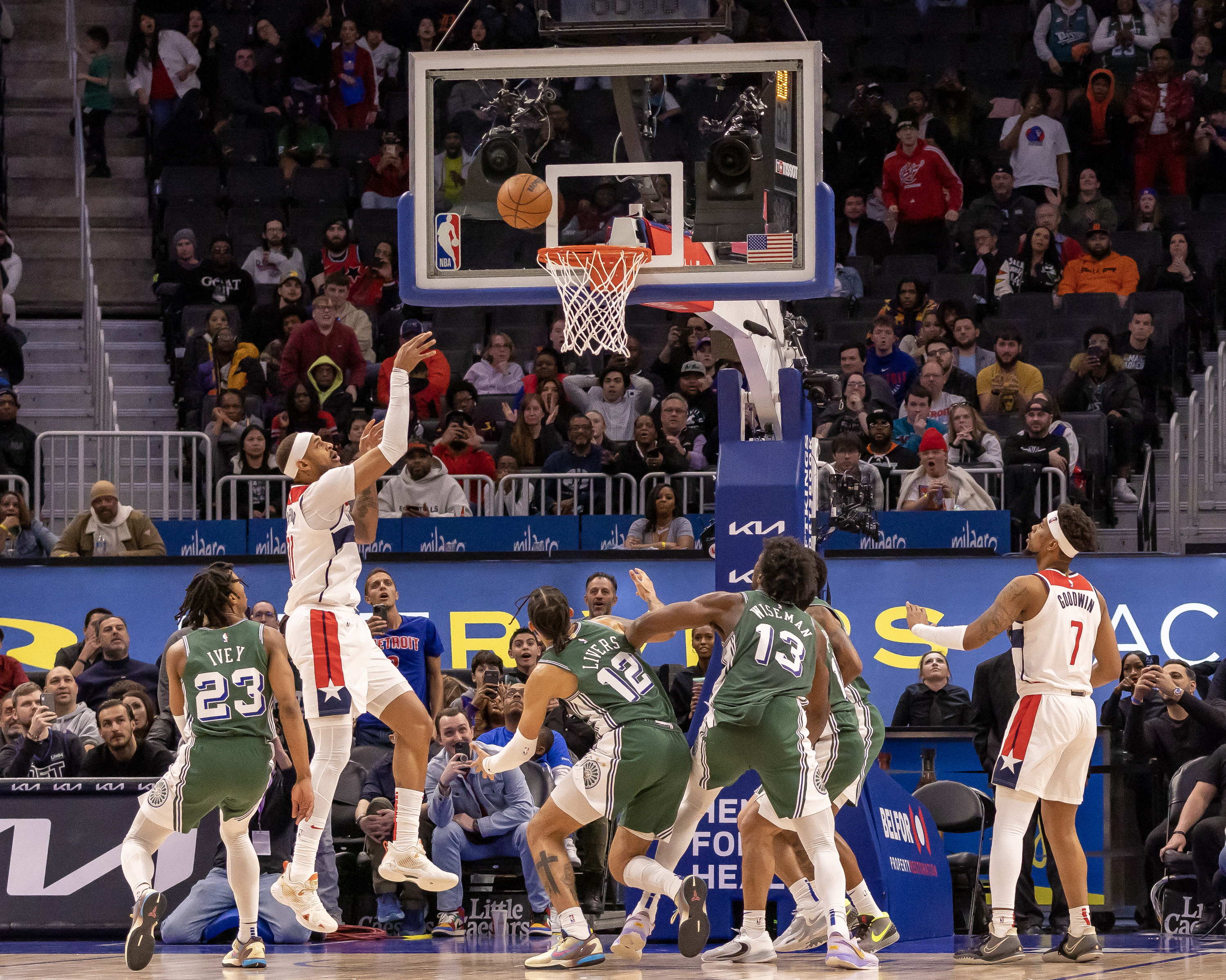 萨迪克-贝接球转身后仰三分绝杀勇士