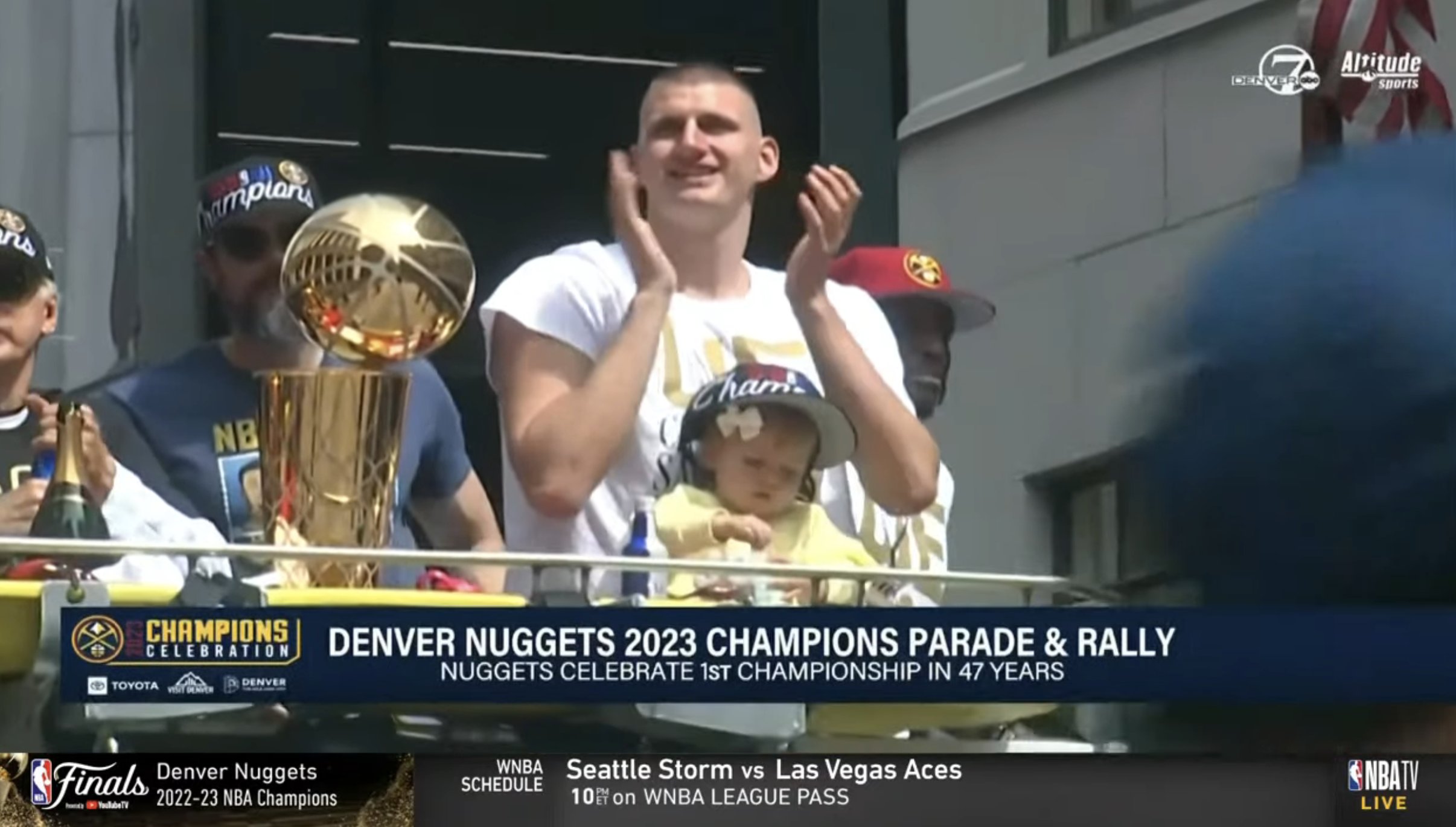 直播吧6月16日讯 掘金队今日开启冠军游行。