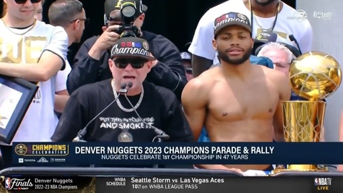 直播吧6月16日讯 今日丹佛掘金队举行冠军游行,掘金主帅马龙在演讲时谈到了布鲁斯-布朗。