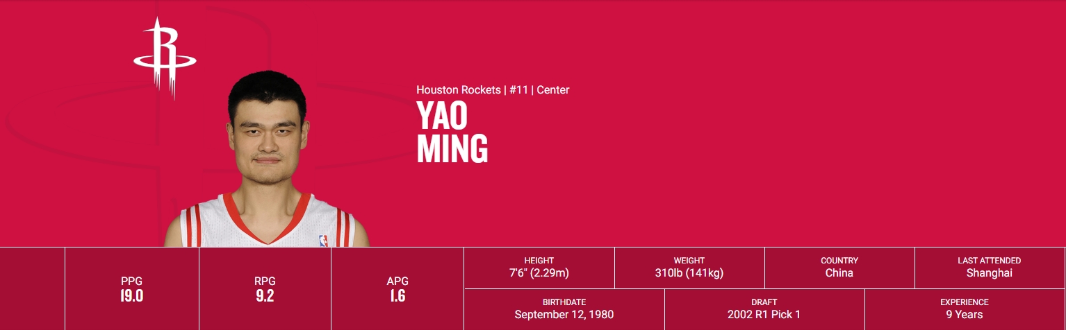 NBA官网姚明的身高是2米29