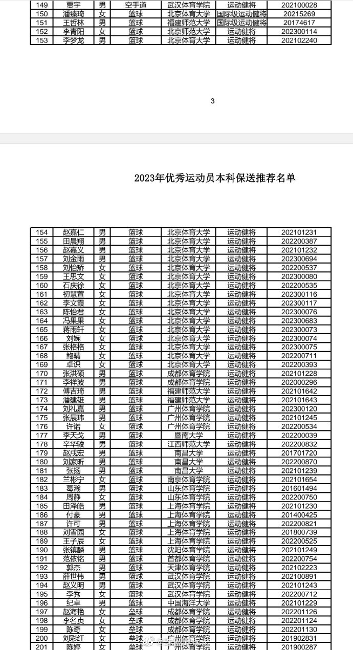 根据名单显示,多名篮球运动员获得保送推荐的资格,部分名单如下: