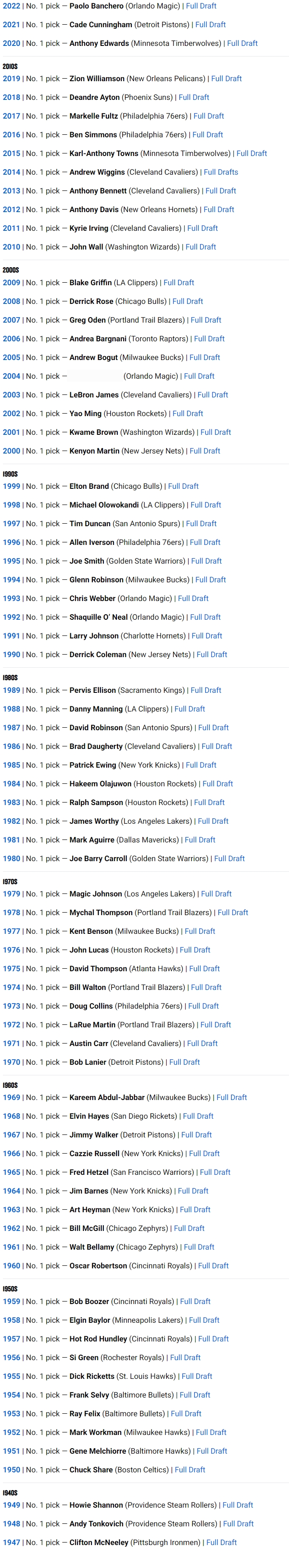 以下为历史所有状元秀: