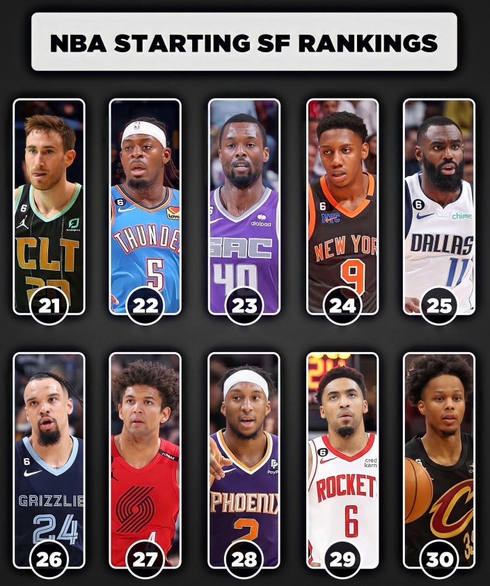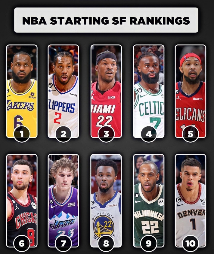 美媒列联盟30队首发小前锋排名:詹姆斯第1 小卡第2 巴特勒第3