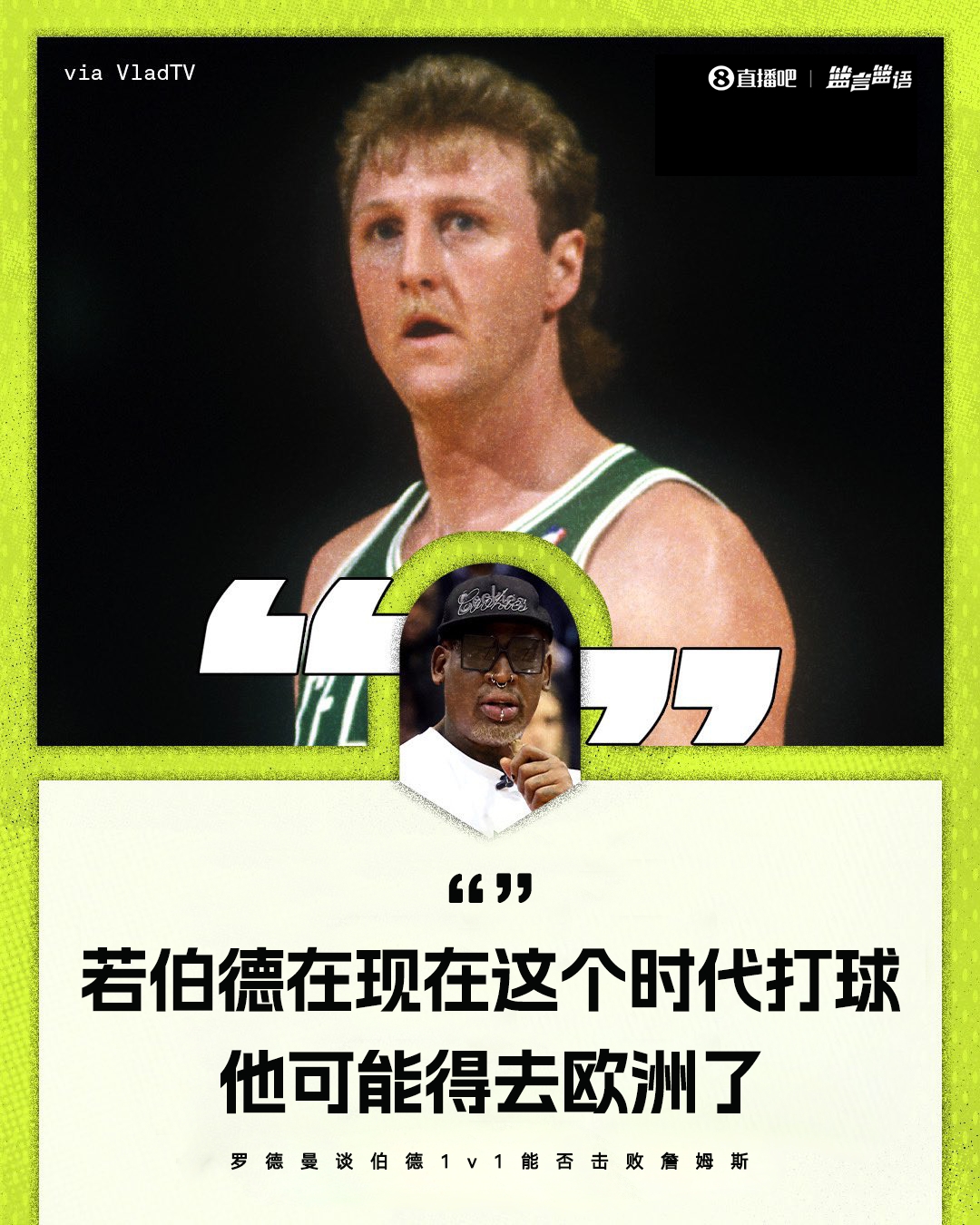 当被问到伯德1对1能否击败詹姆斯时,罗德曼表示: