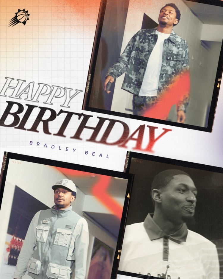 直播吧6月29日讯 今晨,太阳官方发推祝福球队新援布拉德利-比尔30岁生日快乐。