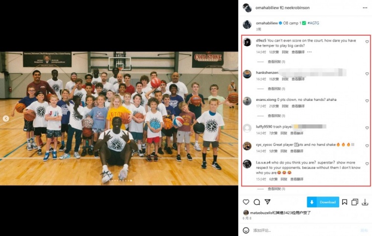 美国U19男篮15号球员Omaha Biliew赛后握手环节全程没有伸手,这一行为也在社交媒体中被网友狂喷。