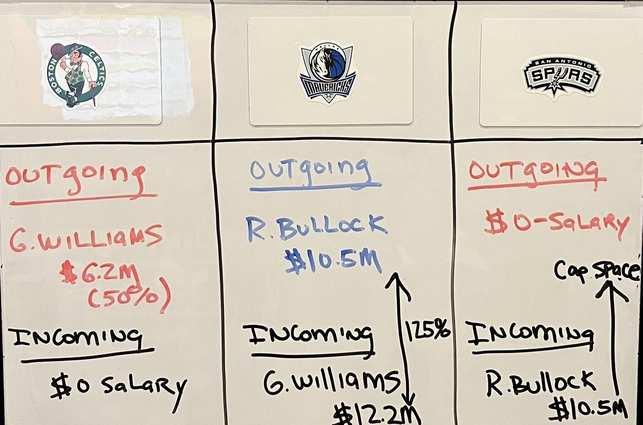 具体到格威的例子,他符合基年补偿的所有标准,旧合同最后一年薪水为431万美元,新合同第一年薪水的50%为628万美元,所以凯尔特人在交易他时送出的薪水为628万美元,而独行侠引进他时吃进的薪水为1256万美元。