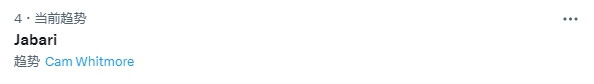 赛后,贾巴里冲上全美推特热搜榜第四位,话题里有惠特摩尔。