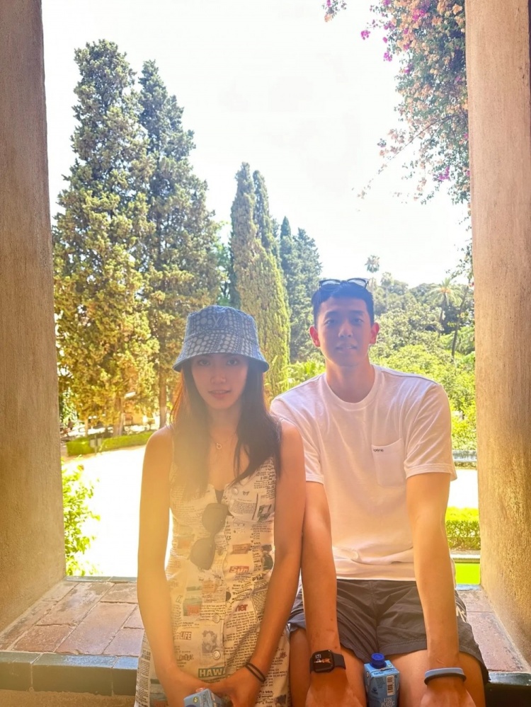 直播吧7月11日讯 深圳男篮球员沈梓捷的女友更新社媒,晒出二人在西班牙的近照。