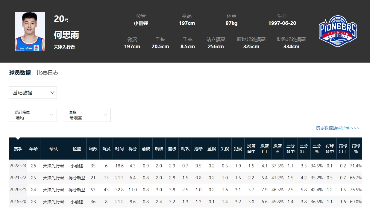 13、【次轮第4顺位:何思雨 天津】(现仍效力于天津)