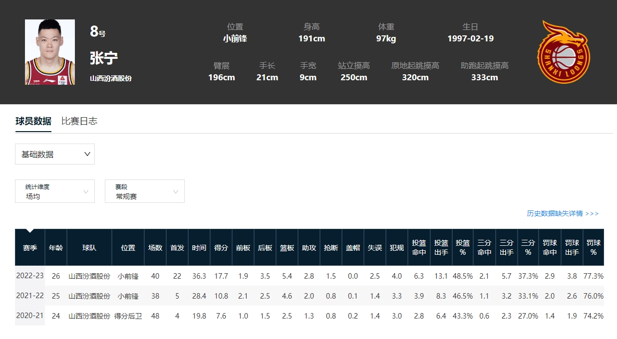 生涯第三年,张宁打出场均17.7分5.4篮板2.8助攻1.5抢断的数据,当之无愧地进入全明星。这个夏天,已经入选三人男篮国家队的他,又在世界各地打着三人篮球分站赛,努力地为中国三人男篮争下一个奥运资格。