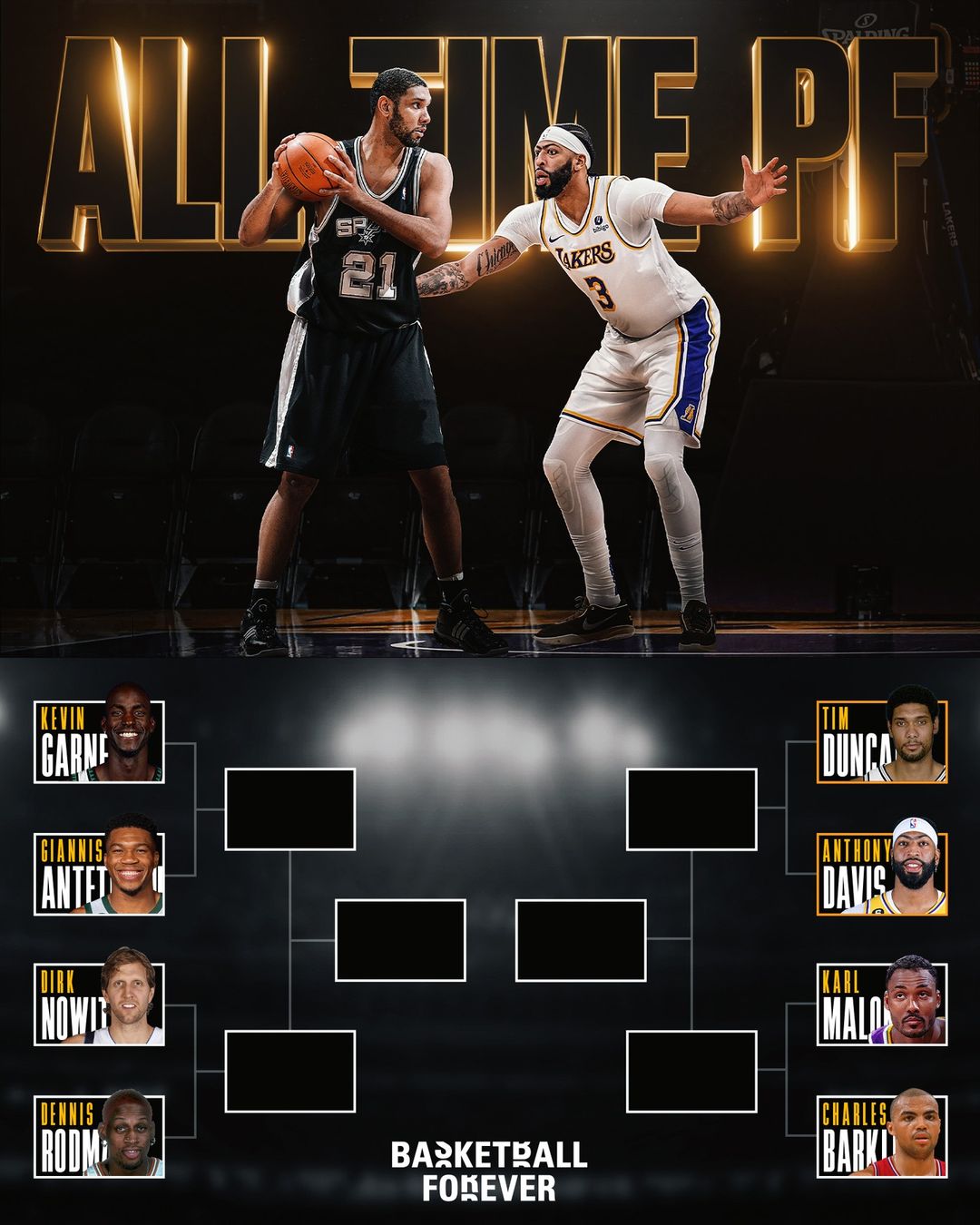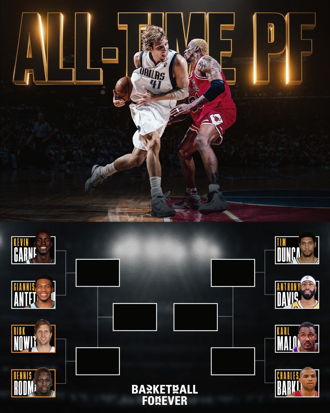 进入决赛圈的8名大前锋为:加内特、字母哥、诺维茨基、罗德曼、邓肯、浓眉、马龙、巴克利。