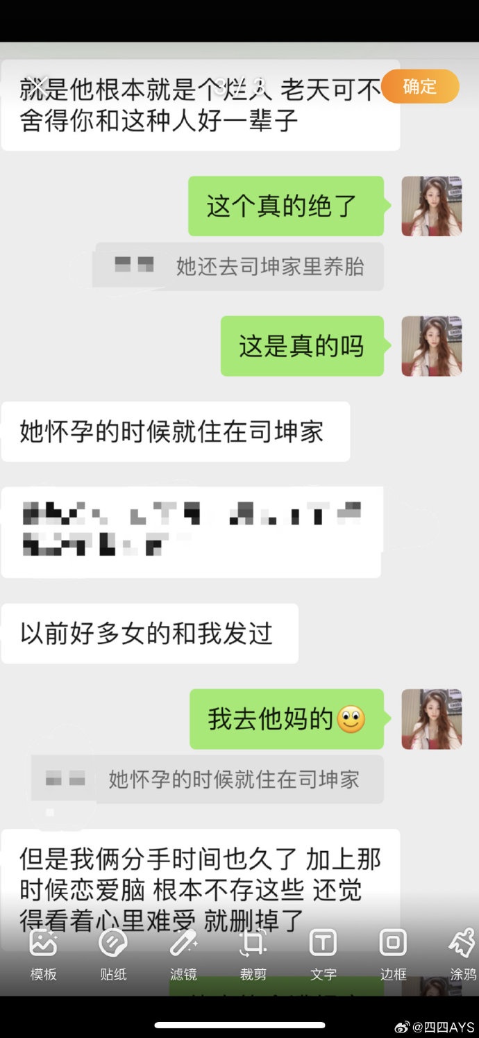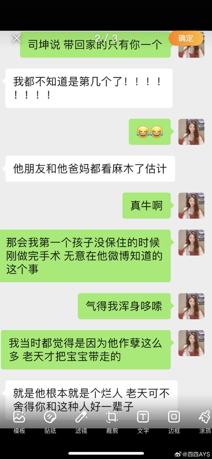 根据截图内容,司坤疑似到处撩妹,脚踏多船。李佳佳已经申请离婚,她透露在孕期间没能保住自己的孩子。