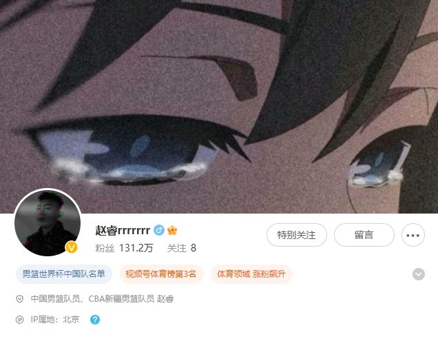 而赵睿的个人微博认证已于近日更改成了新疆男篮队员。