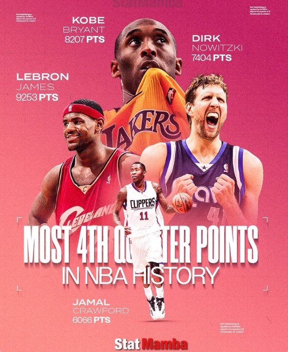 直播吧8月25日讯 此前,美媒StatMamba统计了NBA历史上末节得分最多的TOP4,分别是: