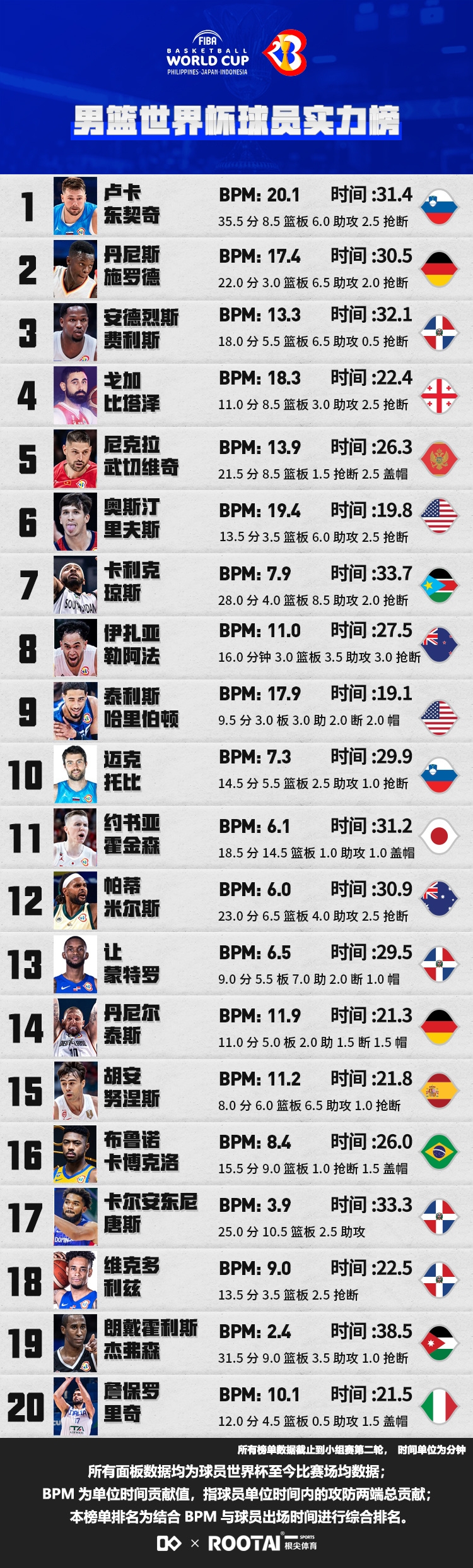 🔥世界杯球员实力榜更新:里夫斯第6 约旦“科比”第19 前20无SGA