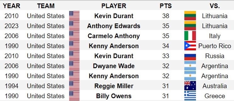 4、肯尼-安德森 34分 1990年VS波多黎各