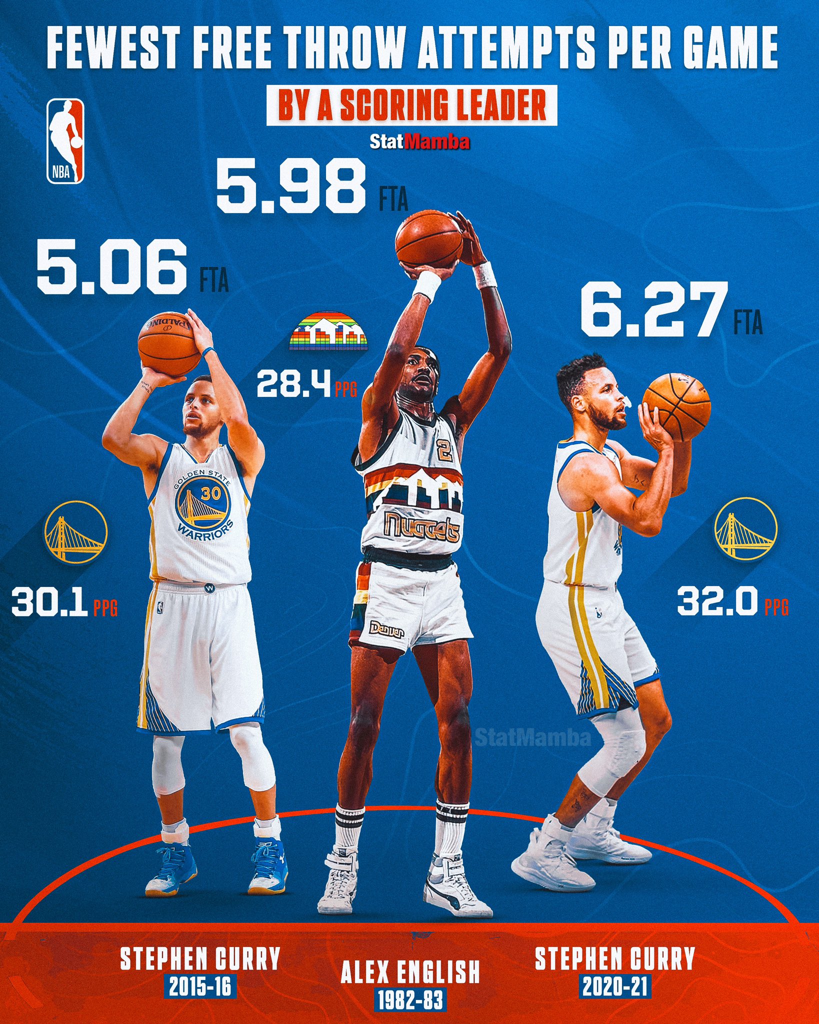 3、2020-21赛季库里 场均得分32分 罚球数6.27次