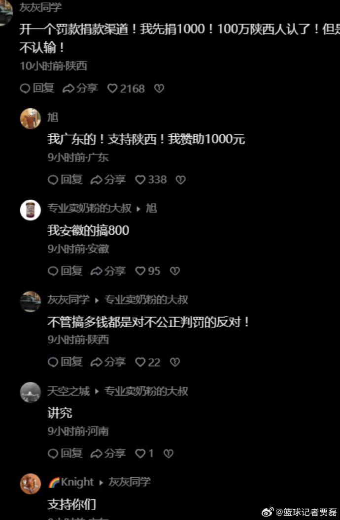 在处罚结果出来之后,有网友@灰灰同学在微博评论区留言,表示要开一个罚款捐款渠道,自己先捐1000!