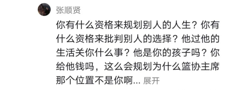 你有什么资格来规划别人的人生?你有什么资格来批判别人的选择?他过他的生活关你什么事?他是你的孩子吗?你给他钱吗?这么会规划为什么篮协主席那个位置不是你啊。他做的比你的认识和认知都高多了,你也没资格来告诉别人该怎么做。