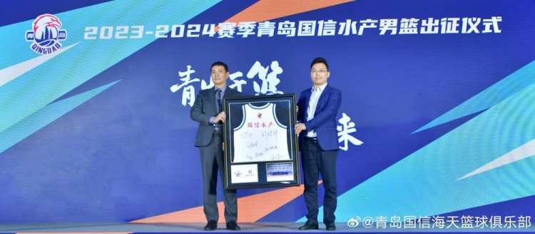 出征仪式上还进行了回馈赞助商环节,由俱乐部向赞助商赠送签名球衣。本赛季,国信集团旗下品牌“国信水产”继续冠名青岛男篮,强强联手“赢战未来”。“国信水产”是青岛国信集团海洋业务板块的总品牌,“裕鲜舫”作为国信水产旗下子品牌,是青岛国信集团全力打造的深远海高品质海鲜品牌。除冠名青岛男篮外,“国信水产”在今年正式成为中国篮球队官方服务商,用实际行动为中国体育事业发展注入新动能。
