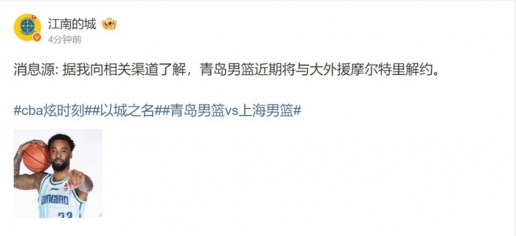 >江南的城:据相关渠道了解 青岛男篮近期将与大外援摩尔特里解约